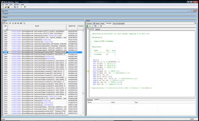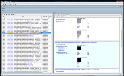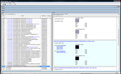 This will replace the render view with a list of all of the API calls that changed the color of that pixel. It’s a life story of that pixel for that frame. You can click on each of the links displayed to move the current selection in the treeview in the left hand pane to that API call.